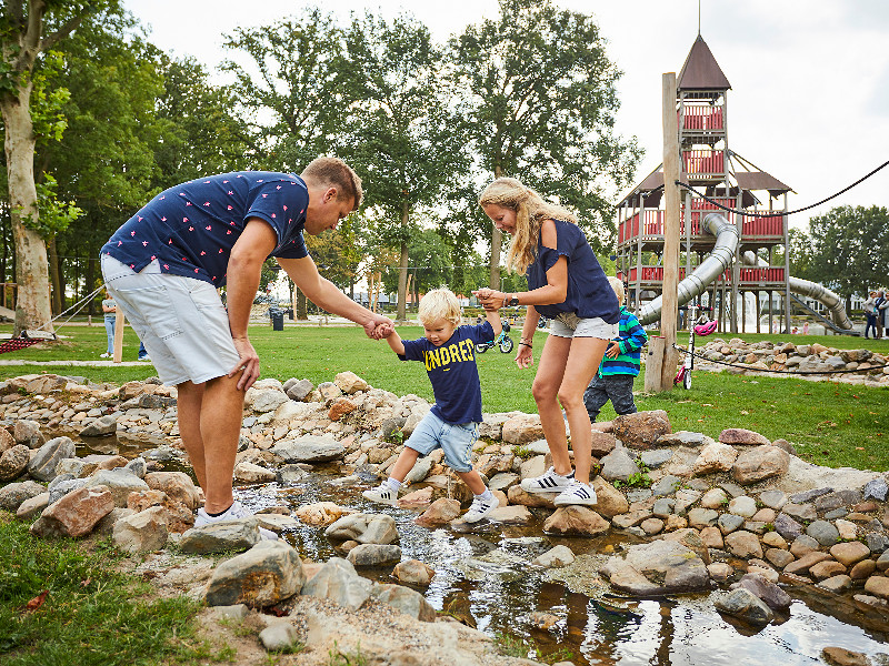 Er is een subtropisch zwembad en een buiten golfslagbad, een hele leuke speeltuin, een overdekte speeltuin en speeljungle, en een roeivijver.