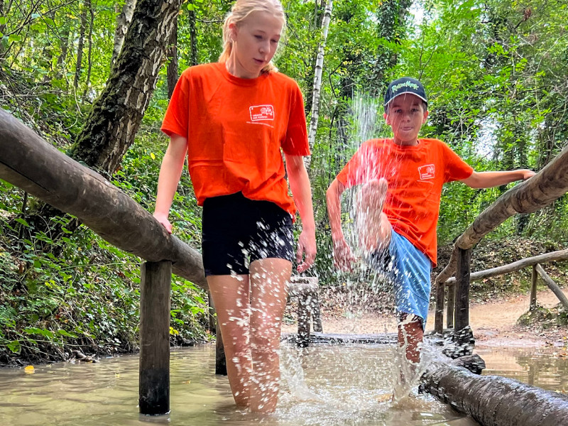 Buiten zijn twee grote meren, waar je onder andere kan kanoën, windsurfen of banaanvaren. Of spelen op het strand, in de speeltuin, of het low adventure parcours natuurlijk.