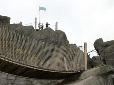 Het pretpark blijkt te bestaan uit een meertje met strand. Moet erg leuk zijn in de zomer, maar nu een beetje te koud en dus uitgestorven.