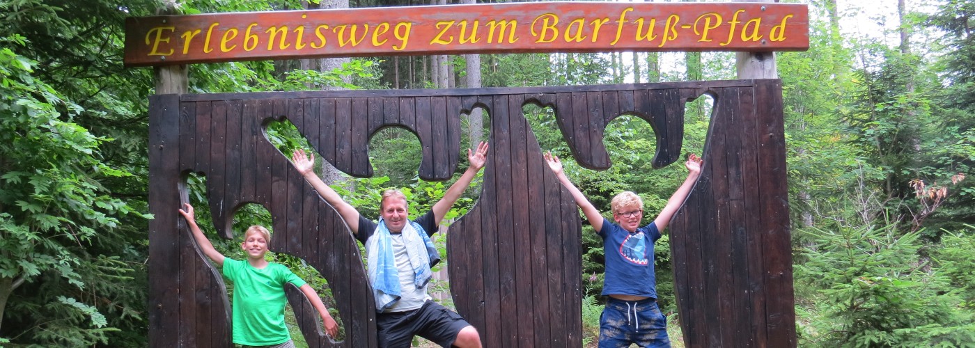 Voor we gaan eten rijden we nog een stuk omhoog op de Meissner. Hier bevindt zich een leuk blotenvoetenpad. Over een afstand van ruim een kilometer gaan we over allerlei obstakels, en door allerlei bakken met verschillende inhoud. Heel erg leuk, zeker de modderbakken.