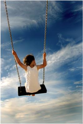 Mooie lucht, mooi meisje op de schommel, Prachtig!