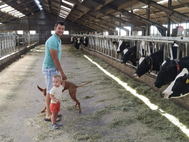 Vaak mag een hond wel mee naar de boerderij. Let wel op dat de hond aangelijnd zit.