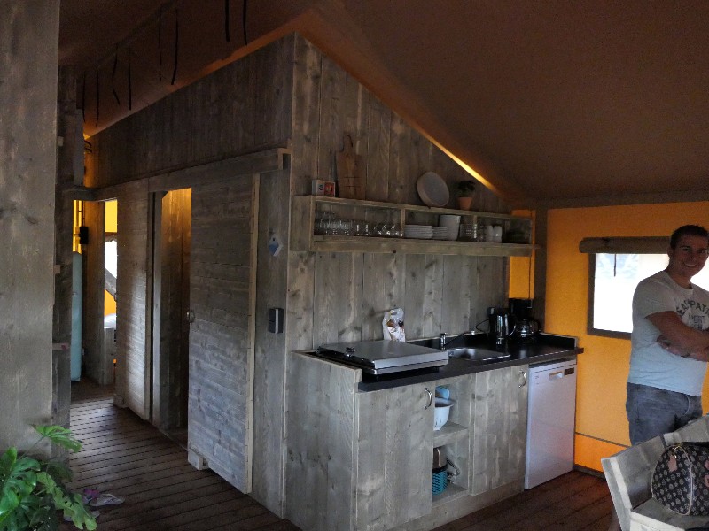 Slapen deden we in een luxe lodgetent. En dat is erg luxe kan ik je vertellen. Zo staat er een tv waar je kan inloggen op je eigen Netflix account, er is een douche, w.c en een keuken (met vaatwasser!).