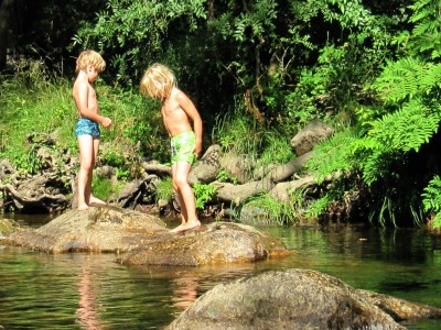 Naast de waterbassins kun je ook zwemmen in de rivier, dammetjes bouwen, of spelen met het water.