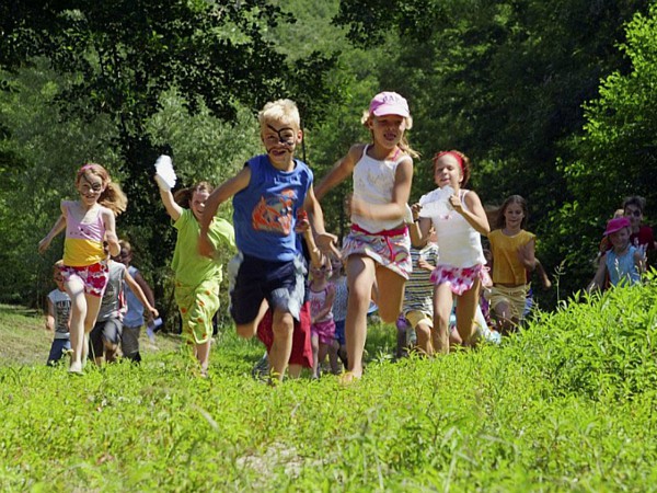 Op het grote terrein is volop speelgelegenheid voor de kinderen. Er is zelfs een eigen meertje waar ze kunnen zwemmen en spelen.