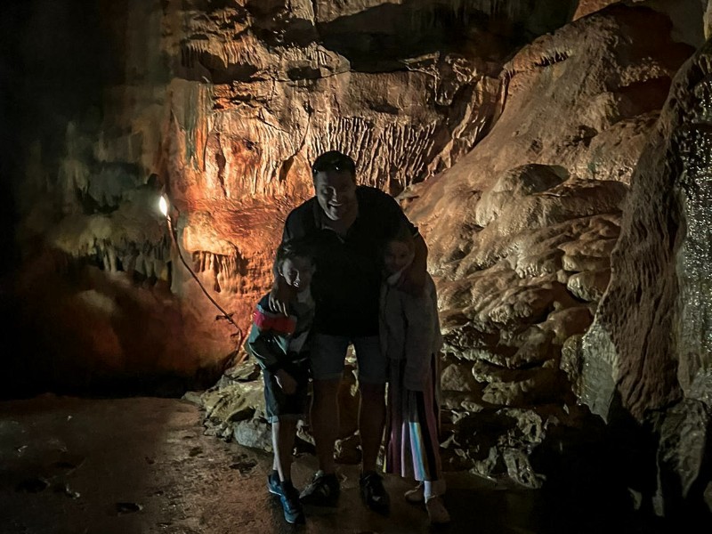 Via bijzondere ondergrondse gangen gaan we in een magische sfeer van kamer naar kamer. De kinderen kijken hun ogen uit, luisterend naar de uitleg hoe in duizenden jaren het kalksteen in allerlei vormen gevormd is.