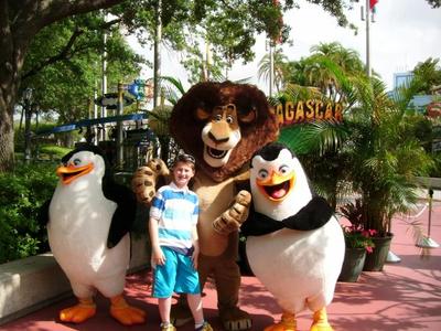 Justice poseert met de dieren van Madagascar.