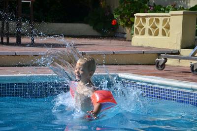 Onze zoon Tobias geniet met volle teugen van het zwembad bij ons Hotel op Guernsey. Zie hoe heerlijk hij kijkt.