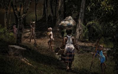 Hier is hij met zijn vriendjes en vriendinnetjes op weg naar de rivier. Dit alles onder toeziend oog van moeder Mekka die onze kleine witte raskel al snel helemaal in haar leven had opgenomen