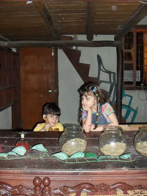 We verbleven er bijna twee weken en onze jongste zoon Parcival (midden van de foto) paste zich moeizaam aan aan het paradijselijke leven hier.