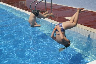 Heerlijk zon! Samen zwemmen met veel plezier!