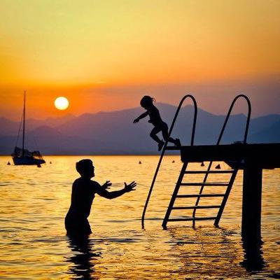 Een lekkere frisse duik bij zonsondergang... Kon je die thuis ook maar maken!!