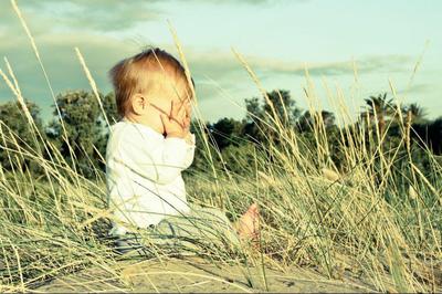 Kiekeboe spelletjes bij zonsopkomst in de duinen.