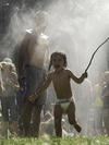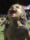 Ter bestrijding van de hitte had men een geïmproviseerde douche neergezet, wat jong en oud wel kon smaken.