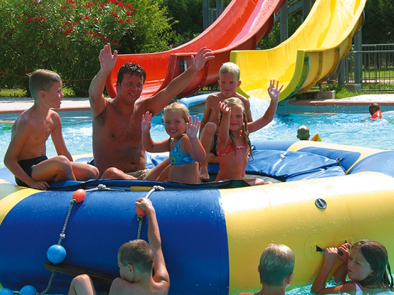 Op de camping zelf is een groot aquapark met maar liefst tien zwembaden. Met een peuterbad, kinderbaden, golfslagbad en een heus Olympisch bad is er voor ieder gezinslid wel wat te vinden. Ook bubbelbaden en spectaculaire glijbanen ontbreken uiteraard niet!