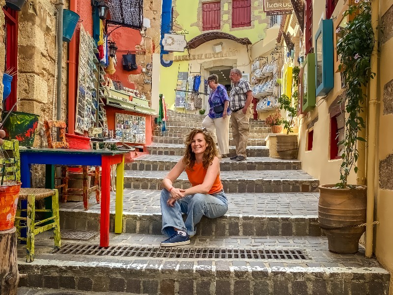 Vanwege de Venetiaanse haven en de achterliggende middeleeuwse straatjes wordt Chania de mooiste stad van Kreta genoemd. In het oude centrum kwamen wij onder andere prachtige kleurrijke straatjes tegen.