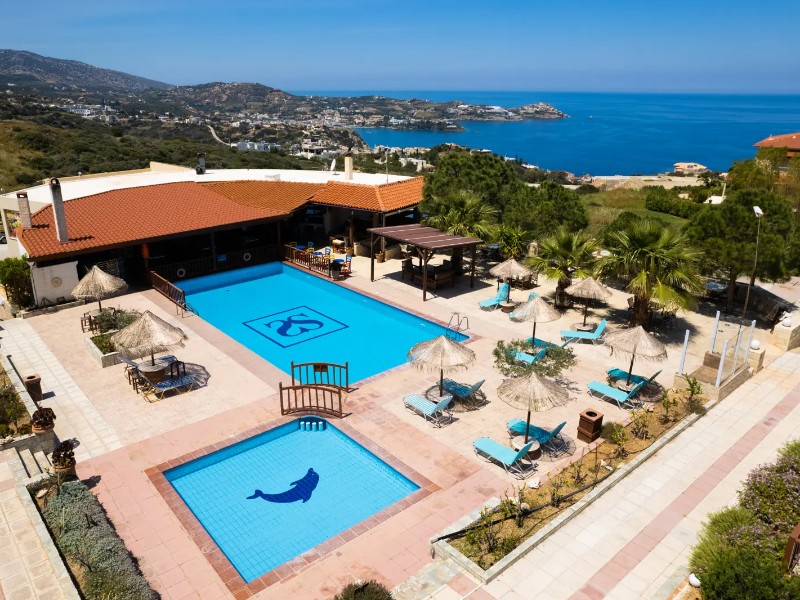 Spiros-Soula Family Hotel & Suites ligt in Agia Plagia op Kreta. Je hebt vanaf hier en prachtig uitzicht over de zee en vanaf het restaurant over de hele baai van Agia Pelagia.