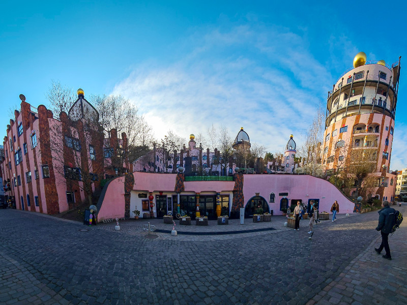 Dit kleurrijke bouwwerk van kunstenaar Hundertwasser voelt bijna als een sprookje. Je kunt er vrij rondlopen langs de kronkelende paden, vrolijke zuilen en groene daken.