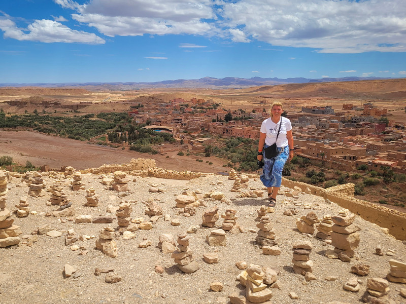 Op de foto zie je ons bij Aït-Ben-Haddou in de regio Souss-Massa-Daraâ. Ik ben hier zowel in 2008 met kinderen als in 2023 zonder kids geweest.