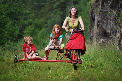 Het fietsen is lichter dan je denkt. Met meerdere mensen kun je op zo'n fiets. Af en toe moet je even de fiets van het spoor tillen als er tegenliggers zijn, want het is maar enkel spoor.