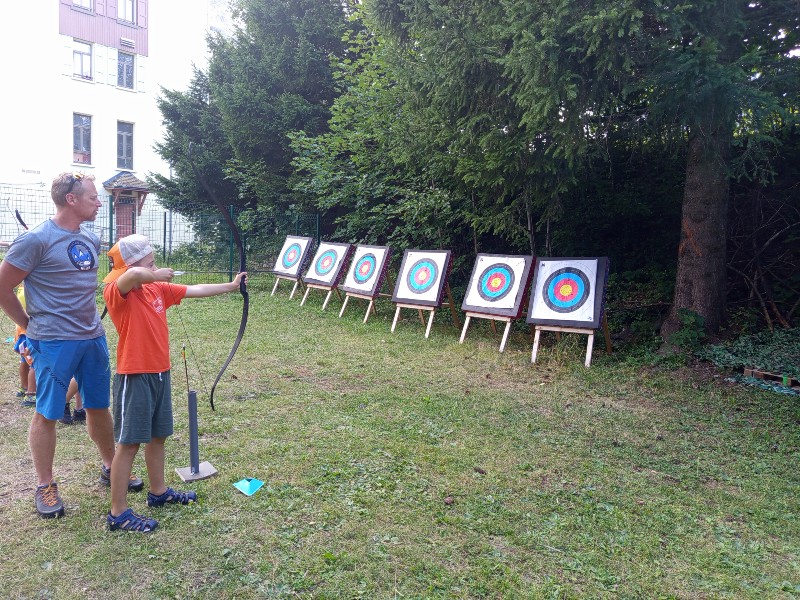 Om onze vakantie sportief af te sluiten deden wij in het dorpscentrum aan de rand van de rivier de Doron een boogschietworkshop. Onder leiding van een (je leest het goed!) alweer een Engelssprekende instructeur.