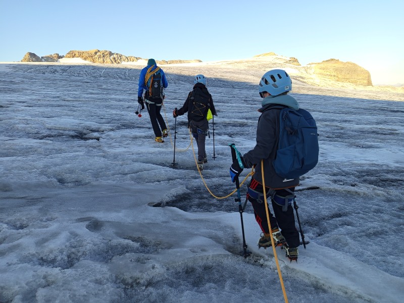 Naast de bovenstaande wandelingen, deden de mannen in ons gezin een wel heel bijzondere ervaring op. Zij deden een tweedaagse hike op Col de la Vanoise. Met een gegidste Gletsjerwandeling!