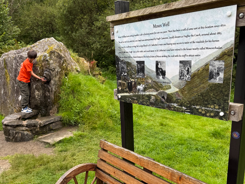 Wij maakten een wandeling naar de top van de Craigellachie, een route van vijf kilometer. Goed te doen met kinderen die zelf kunnen lopen of in een draagzak/rugdrager zitten.