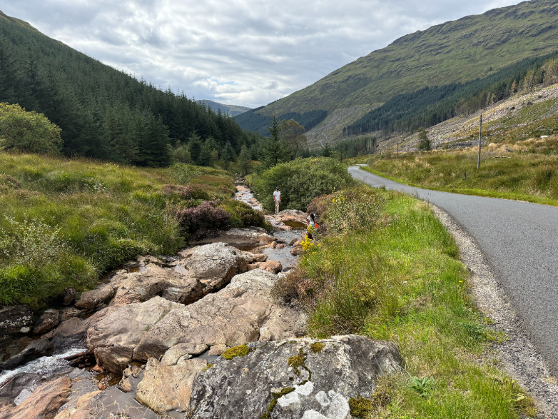 Glen Coe heeft niet alleen een overweldigende natuur, maar ook een rijke geschiedenis. Hier vond in 1692 de beruchte Massacre of Glencoe plaats, een tragische gebeurtenis in de tijd van de Highland clans. Tegenwoordig is het een vredige plek waar je alleen de wind hoort suizen tussen de bergen. Of in ons geval, nog wat prachtige doedelzak muziek.