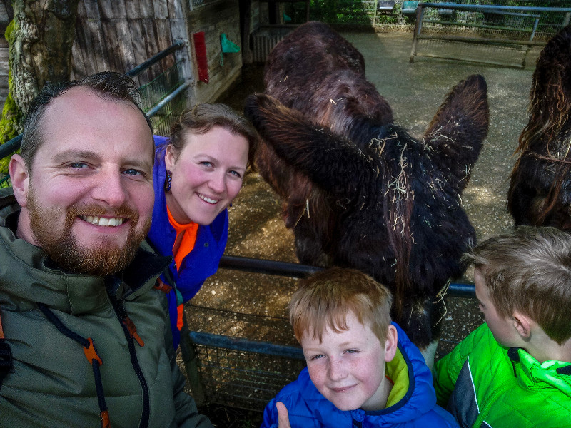 Onze jongens hadden al gauw ontdekt dat als je het voer in je ene hand houdt, je perfect met je andere hand kan aaien. De dieren zijn zo gewend aan het menselijk contact, dat ze ook daadwerkelijk naar je toekomen.