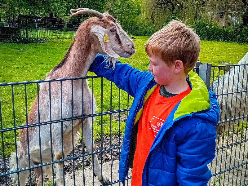 Er zijn drie verblijven waar je daadwerkelijk in mag om de dieren te voeren. En bij twee grote verblijven waarin de geiten en schapen zitten mag je zelfs naar hartelust knuffelen!