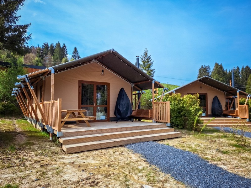 Zo zijn er ook glampingtenten beschikbaar, deze tenten zijn het hele jaar door boekbaar. Ze beschikken over een pelletkachel en hebben echt een deur in plaats van een doek met rits. Daarnaast hebben de glampingtenten ook eigen sanitair.