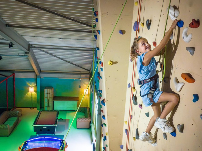 De kinderen kunnen er los gaan in de avontuurlijke speeltuinen en als het weer wat minder is in de grote overdekte speeltuin met stoere klimmuur. Daarna kan je met zijn allen afkoelen in het zwembad met kinderbad. Misschien heb je ook nog wel zin in een potje adventure golf, tafeltennis of boogschieten?
