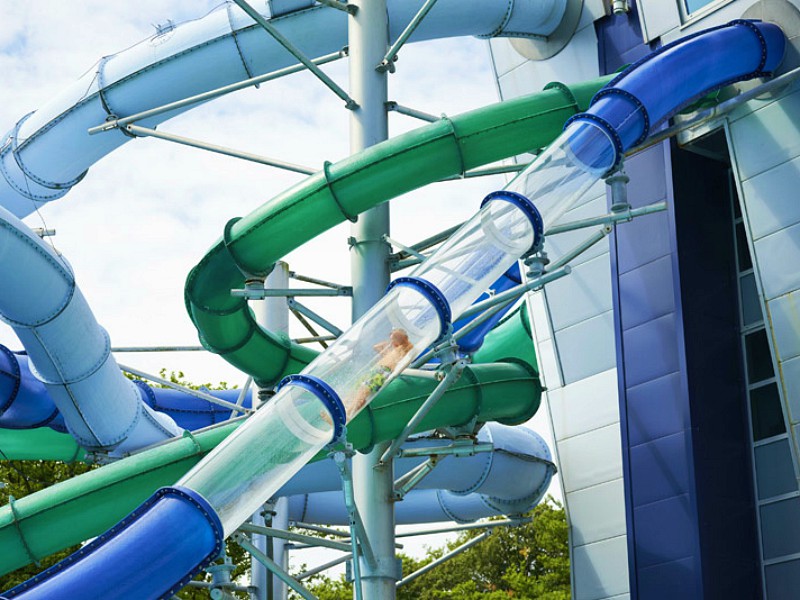 Met vijf waterglijbanen en een wildwaterbaan voel je de adrenaline door je lichaam stromen. Daarna kun je ontspannen in het indoor design zwembad. Er zijn ook een wedstrijdbad en bubbelbaden aanwezig. Extra leuk zijn de onderwaterscooters!